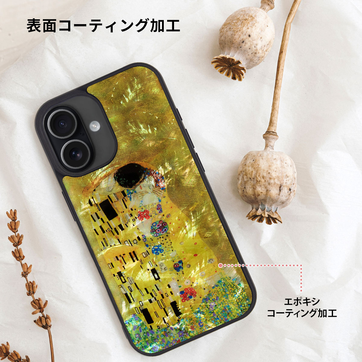 クリムトの“黄金時代”を代表する名画「接吻」がiPhoneケースになりました。時代を超えた絵画を手元で楽しめます。 天然貝を組み合わせることによって名画の新たな一面を垣間見ることが出来る、先進的なデザインです。