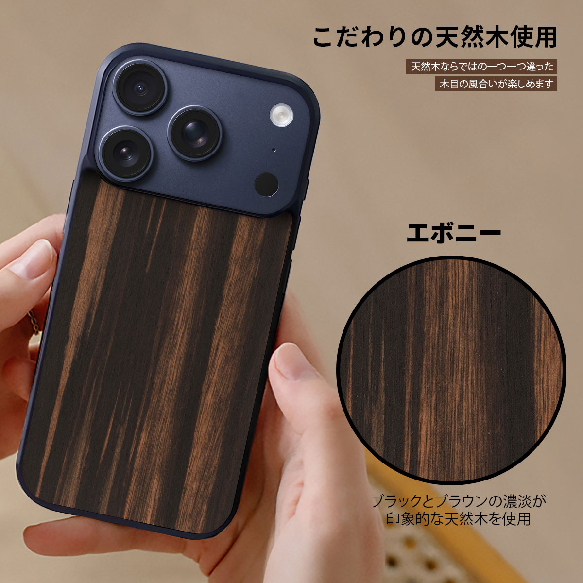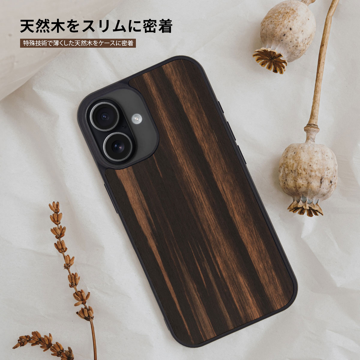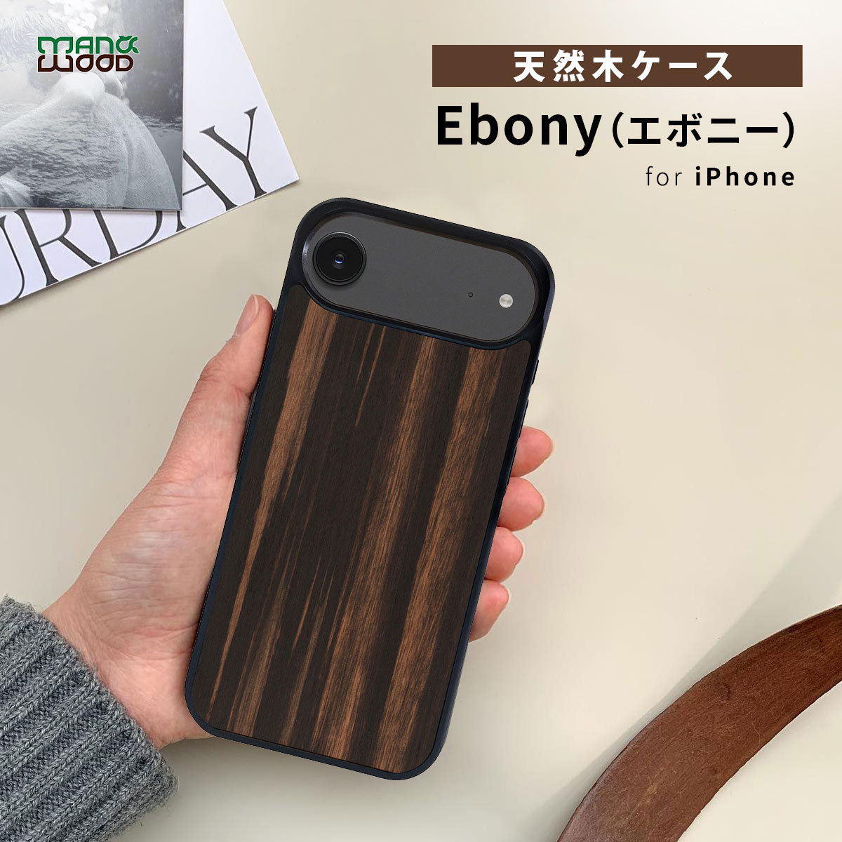 Man&Wood(マンアンドウッド)の「天然木ケース Ebony 」は、こだわりの天然木から作られたナチュラルなケースです。